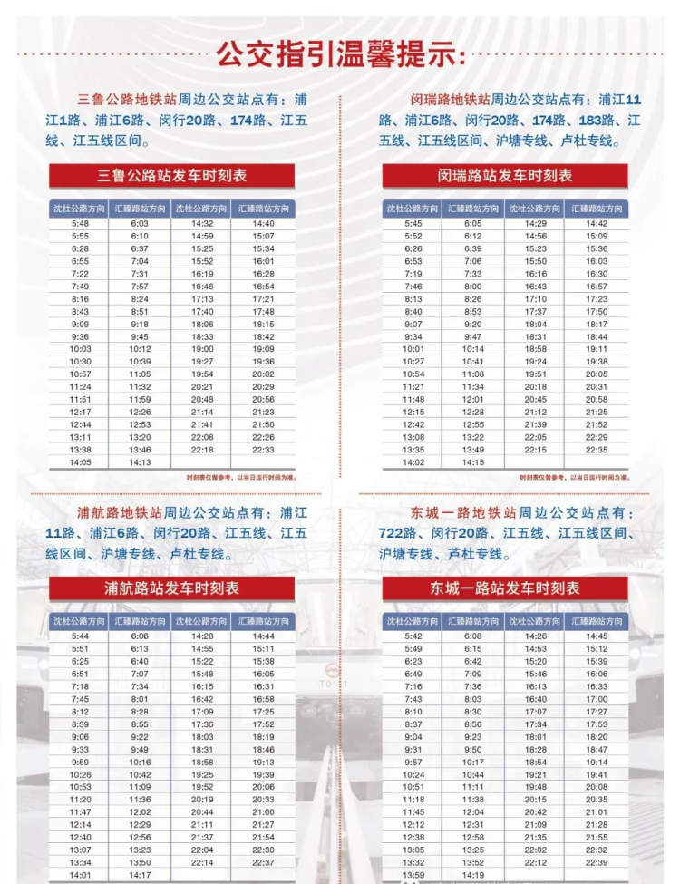 (1) 沈杜公路站:浦江11路、浦江15路、浦江20路、浦江8路、海航专线、闵行10路、闵行38路。