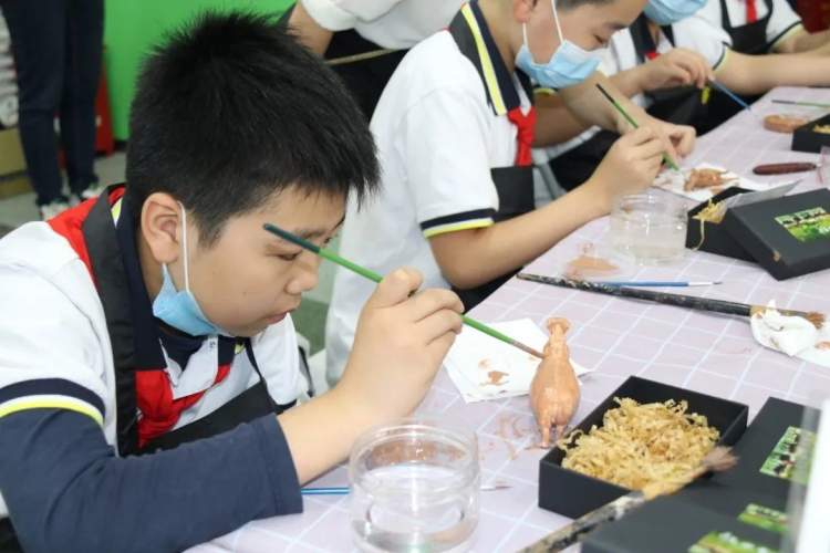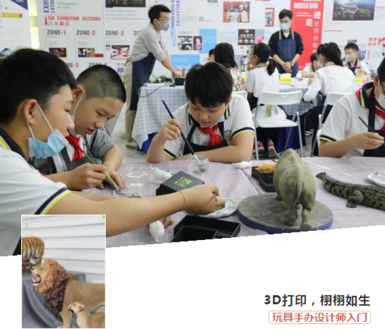 △ 亲自体验,原来制琴真的很不容易!在会场的东角,一群热爱美术的青少年们,正聚精会神地用画笔描绘逼真的犀牛“手办”↓