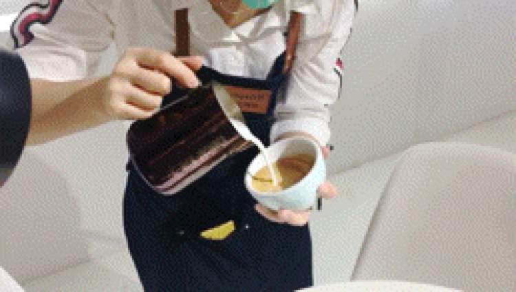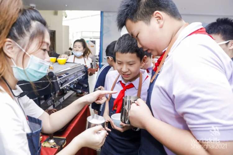 △ 项目老师还为现场的青少年们准备了一份惊喜——眨眼间,老师便操作拉花工具飞快地变出一只咖啡版世界技能大赛吉祥物“巧巧”!