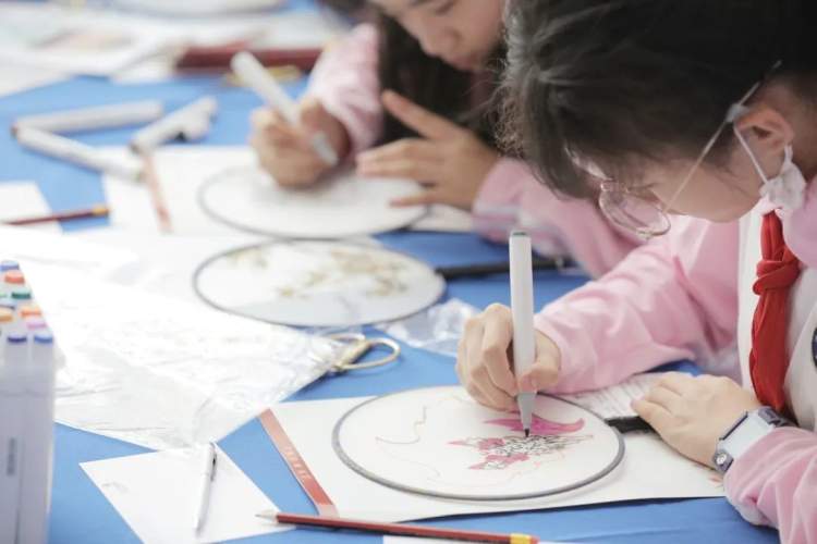 △ 项目负责人、东华大学服装学院教授张祖芳告诉小主播,画绣体验是专门为这次倒计时一周年系列活动准备的,“量身定制”了一系列具有上海特色的图案,如外白渡桥、旗袍、上海市花白玉兰,还有吉祥物“能能”和“巧巧”哦!