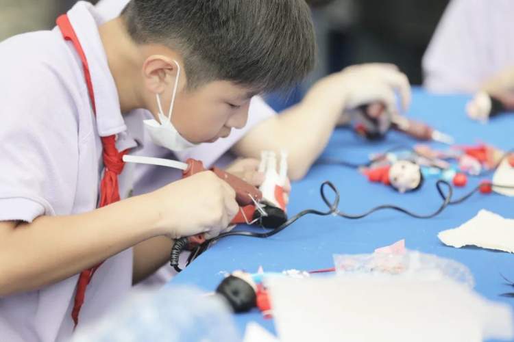 △ 青少年们正小心使用热胶枪制作娃娃的服饰和头饰,小巧的工艺品,浓缩了中华服饰文化的瑰丽与美好。小主播靳开颜的体验还在继续,放下人偶娃娃,这些项目再次吸引了她的目光↓