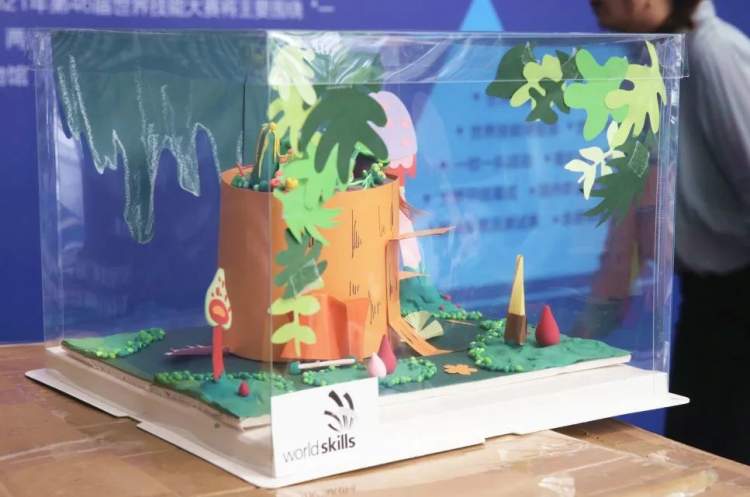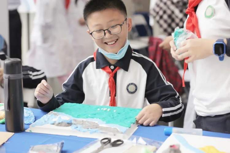 △ “小中医”们制皂热火朝天,这厢“小建筑师”们也是一派热闹的气氛。你知道吗?世赛中的“商品展示技术”项目与橱窗展示设计有一定联系。宋玥老师带来了橱窗展示设计模型,带领大家利用粘土、纸雕等材料,创作属于自己的一方空间。