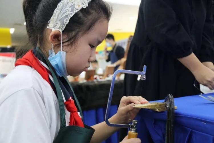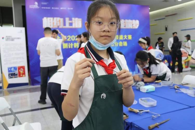 △ 在首饰制作师的体验现场,青少年们首次get世界技能大赛珠宝加工项目初级技巧——用锯、抛光技能!