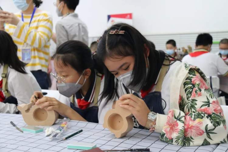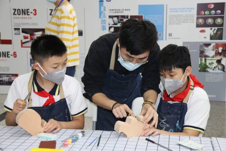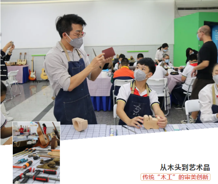 △ 俗话说“百匠木为先”,如何让“木工”这个传统、门槛高的手工技艺走进青少年,在今天小木匠音乐盒的体验项目中有了答案——创造符合孩子审美的工艺品。