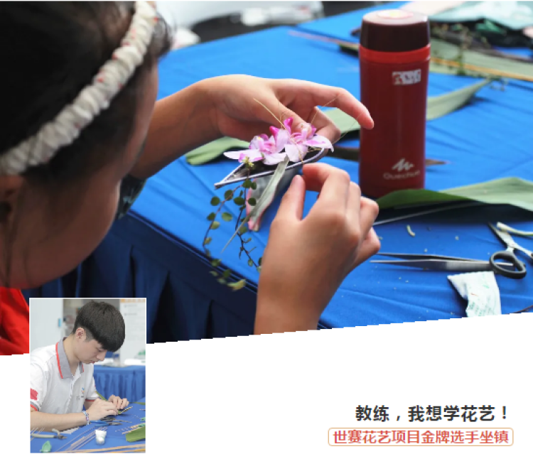 △ 这个人有点眼熟!靳开颜在现代花艺项目体验点“捕捉”到了一位重量级讲师——第44届世界技能大赛花艺项目金牌选手潘沈涵。