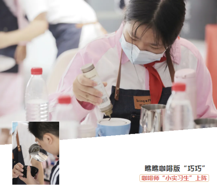 △ 咖啡控们绝对不能错过的体验!青少年们摇身一变成为咖啡师“小实习生”,从制作意式浓缩咖啡的原理学起,拿铁比例调配、蒸汽棒加热、打发奶泡…..我们做的这杯咖啡,拥有国际水准😏