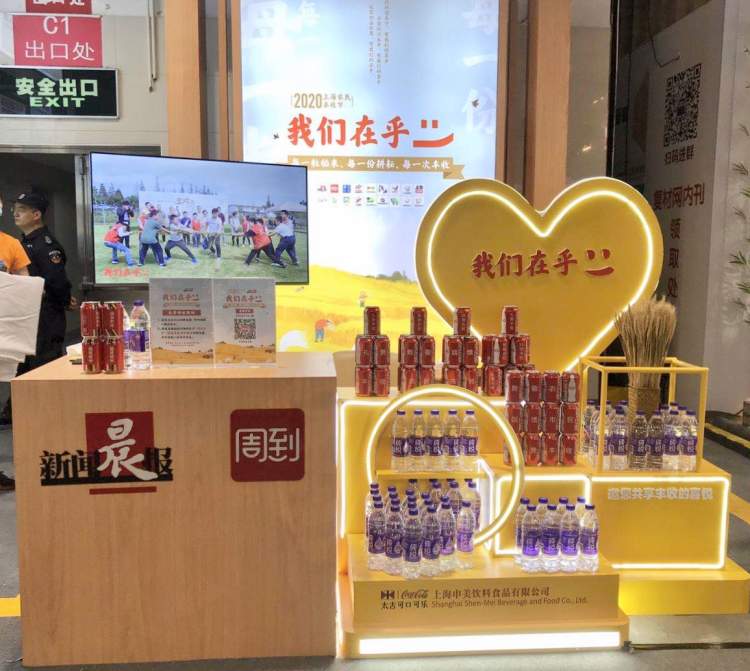 9月22日至9月24日,2020中国农民丰收节面向市民开幕,“我们在乎”系列活动也来到了“高峰”。在大片丰收盛景中,有这样一间“我们在乎”直播间伫立其中。在这里,新闻晨报·周到上海携手上海16个区融媒体中心,并与太古可口可乐上海申美一起,为观展市民、展会工作人员、农业工作者代表等送上一瓶瓶水、一听听可口可乐作为丰收的答谢。