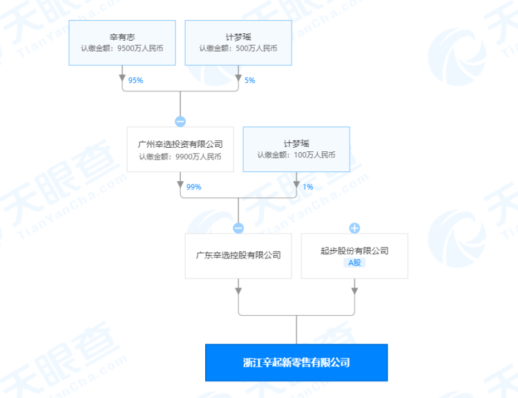 天眼查App显示,9月25日,浙江辛起新零售有限公司成立,注册资本1000万人民币,法定代表人为章利民,经营范围含鞋帽零售;服装服饰零售;玩具销售;体育用品及器材零售;玩具、动漫及游艺用品销售;母婴生活护理(不含医疗服务);珠宝首饰零售等。该公司的两大股东分别为A股上市公司起步股份(603557)和广东辛选控股有限公司。其中,广东辛选控股有限公司的疑似实际控制人和最终受益人为“快手一哥”辛巴(本名辛有志)。