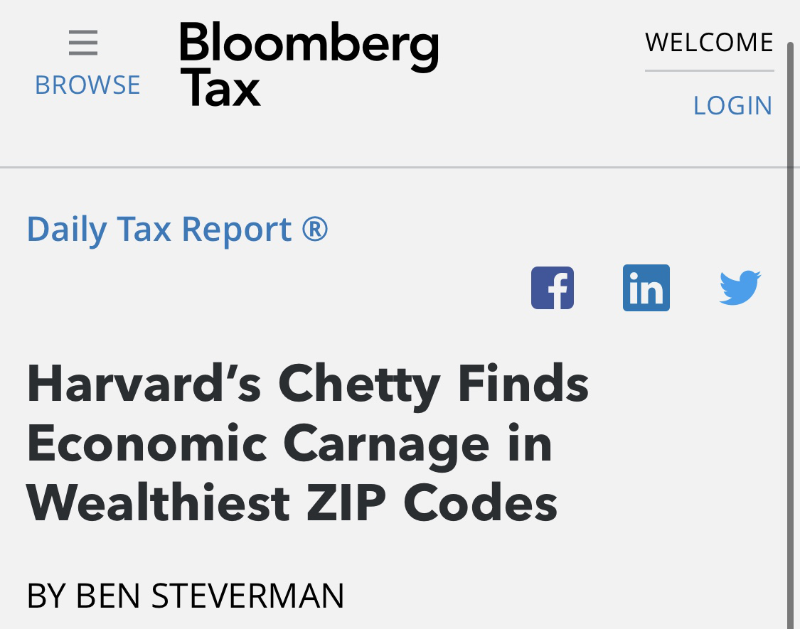△彭博社报道,哈佛大学教授切蒂找发现最富裕的地区经济也遭到严重打击
