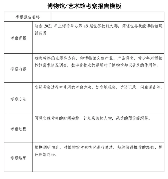 PS:请点击文末“阅读原文”下载《“为世界技能博物馆献一计”社会考察报告指导手册》(提取码:z39u)