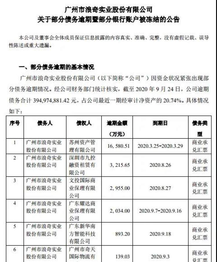 由于借款合同纠纷,今年9月广州浪奇及其法定代表人两次被采取限制消费措施,并两次被列为被执行人,执行标的合计1.28亿元。