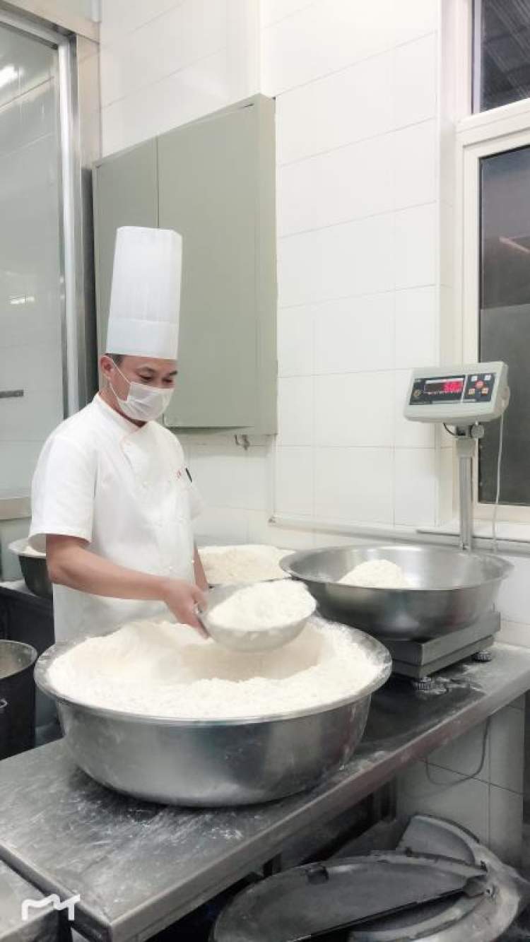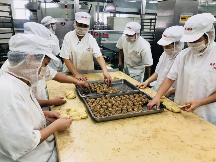 和面、制馅、制皮、包酥……每天清晨6点,位于闵行区梅陇镇的上海龙华素斋禅悦食品有限公司工厂里的工人们便开始忙碌起来,每年到了中秋月饼季,这里就变得格外忙碌。作为龙华素斋首席技师、“闵行工匠”的刘锦久更是每天一早就来、最晚再走,因为这两个月每天都要从厂里生产10万只月饼发往全国各地。