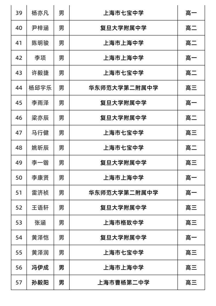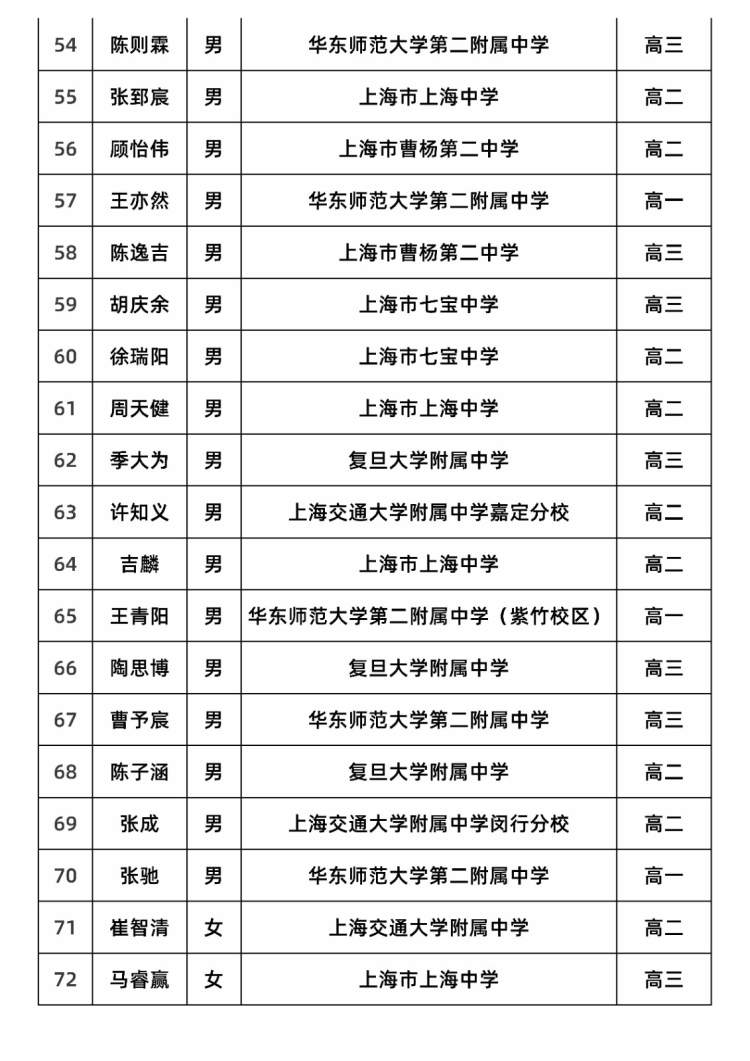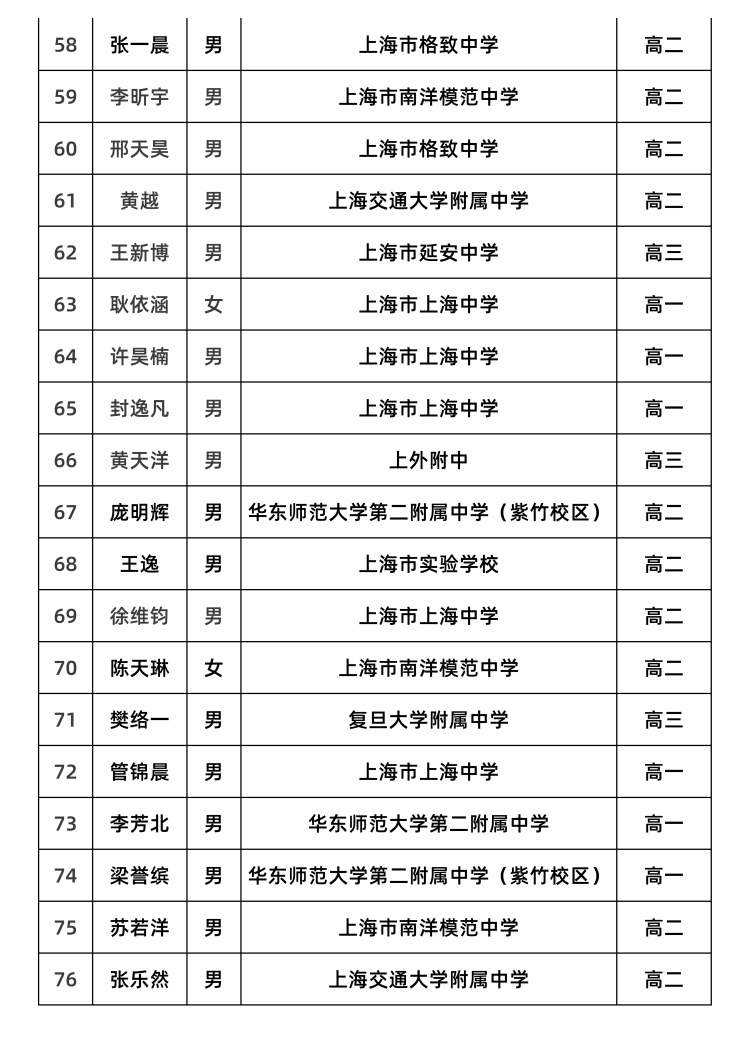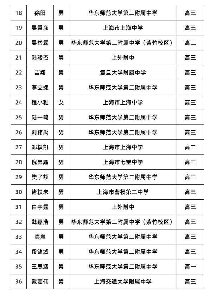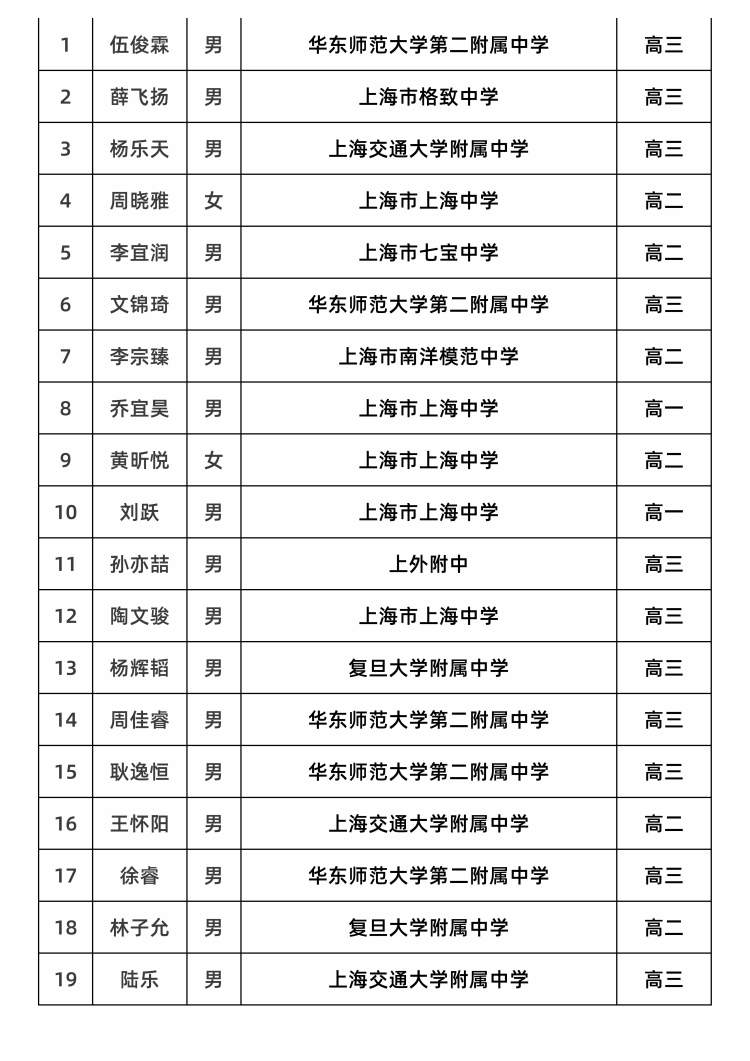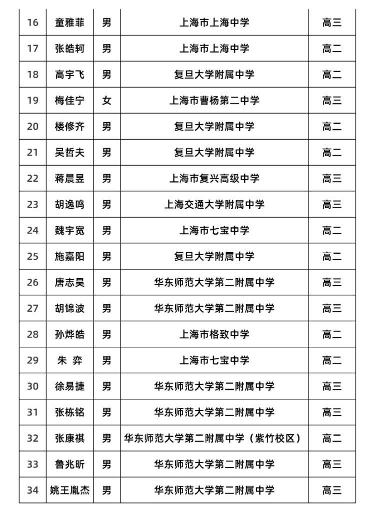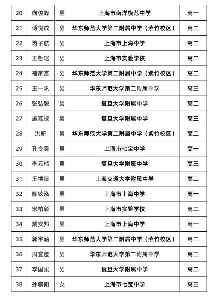 另外,公示的20人名单中,有三位同学为高一同学,均来自华东师大二附中。