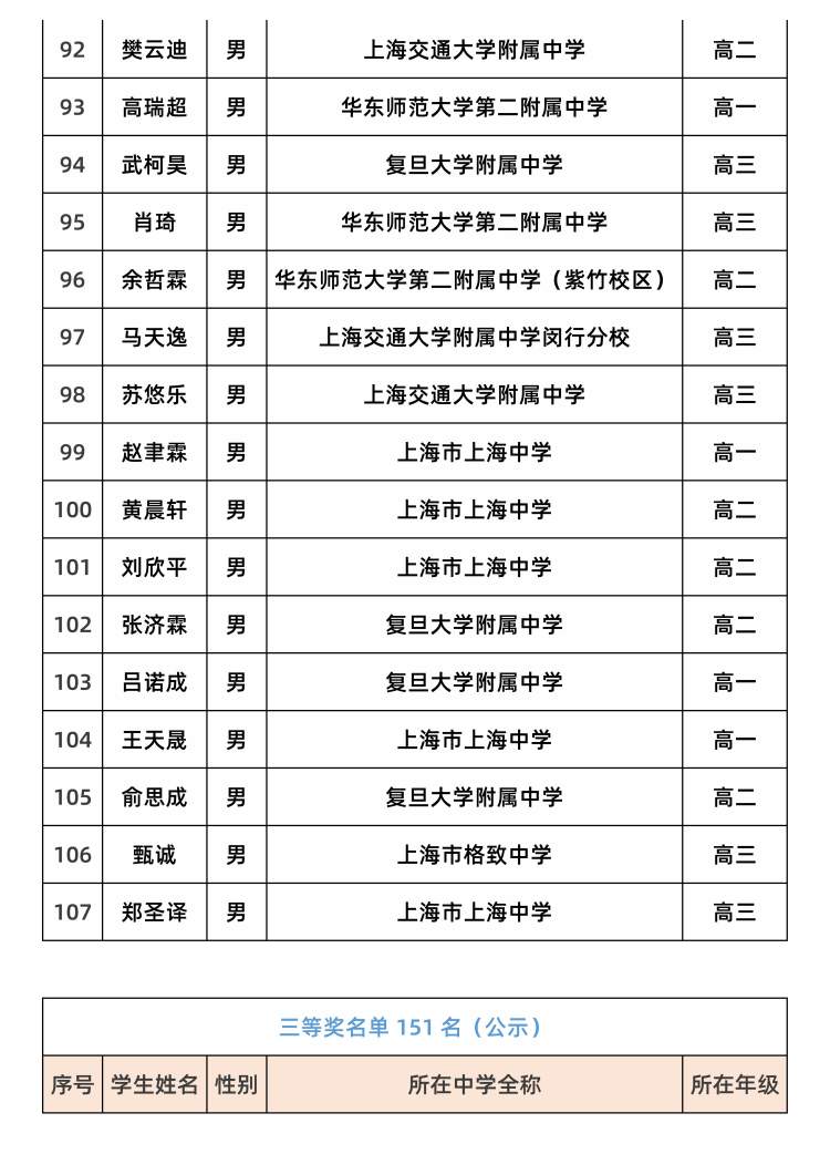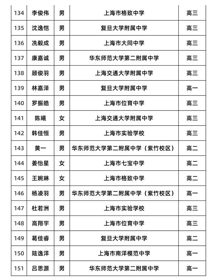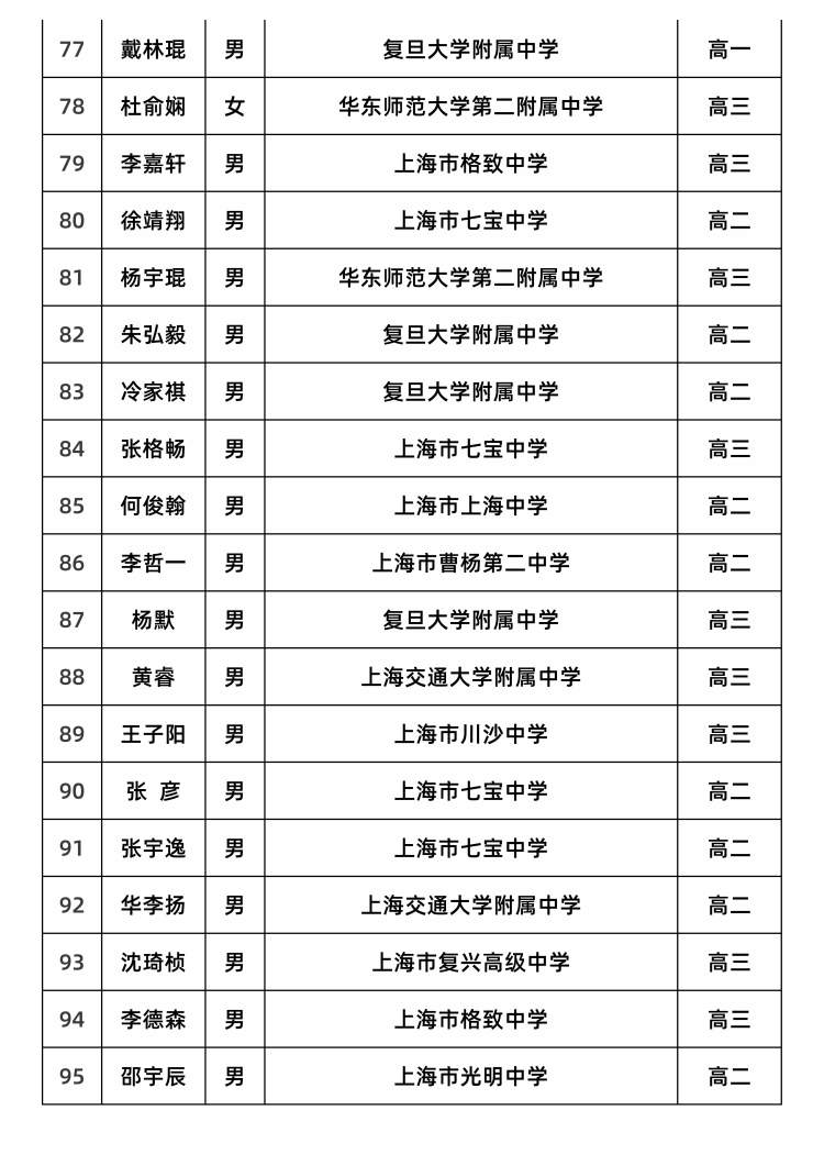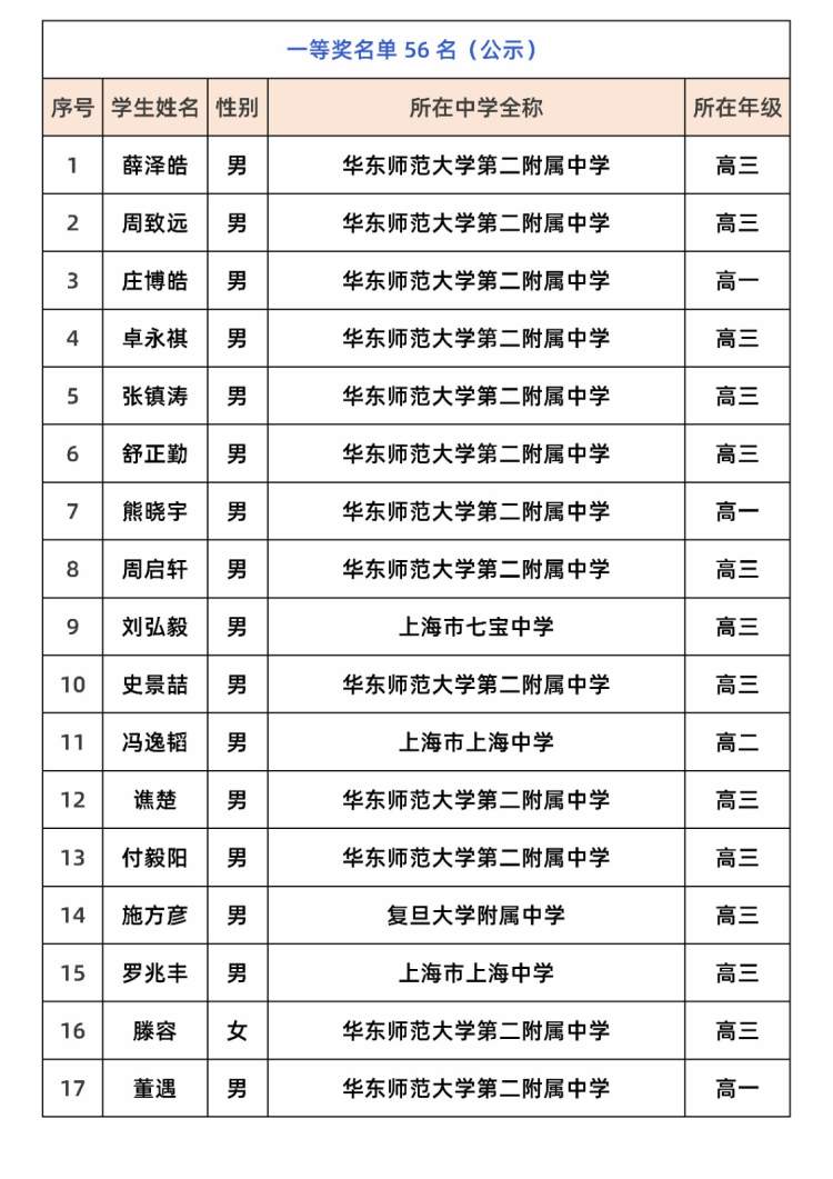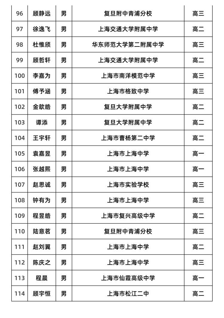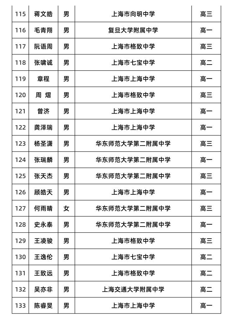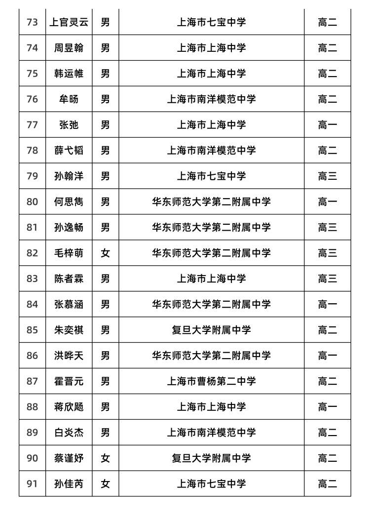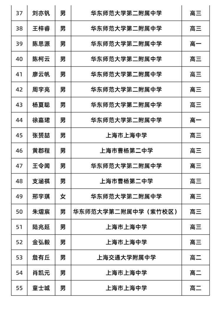 另外,公示的20人名单中,有三位同学为高一同学,均来自华东师大二附中。