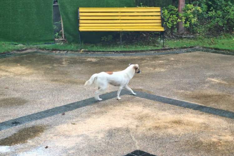 ▲事发后,仍有未佩戴狗绳的狗狗在小区“散步”