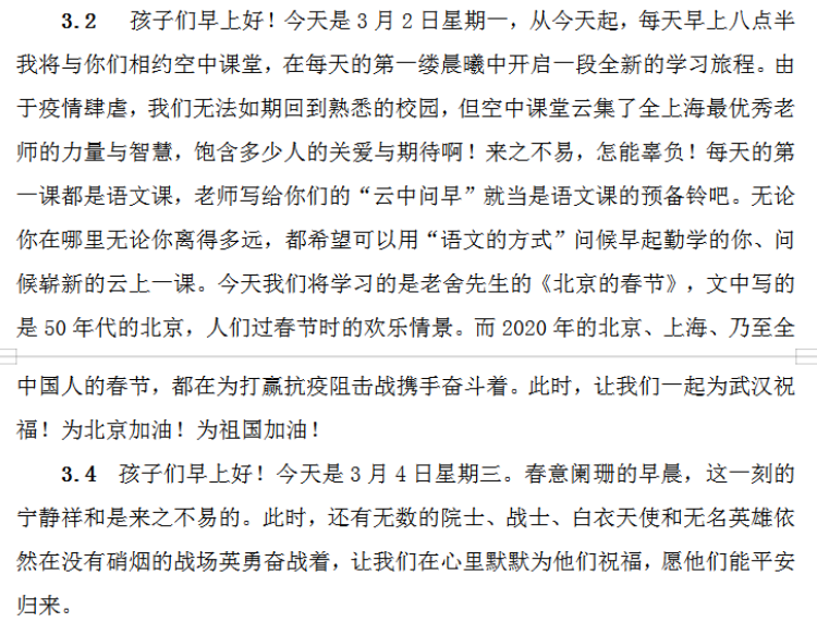 从3月2日中小学在线教育开启之日起,上海市宝山教育学院实验学校语文教师赵永青每天都会撰写一篇“云上寄语”,直到5月18日班上学生们的返校复学后收笔。