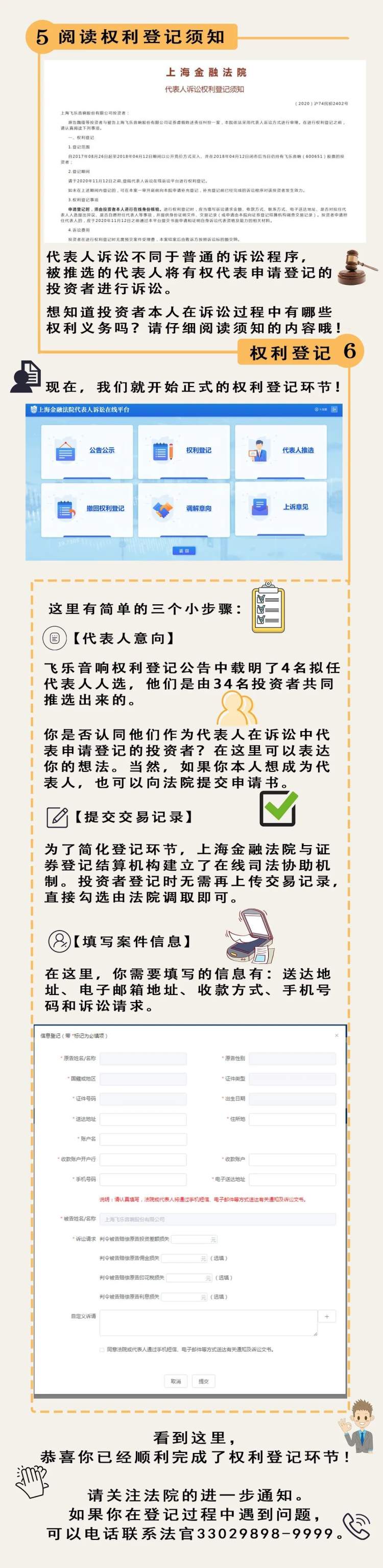 如何进行权利登记?请看下图《上海金融法院代表人诉讼权利登记操作指引》
