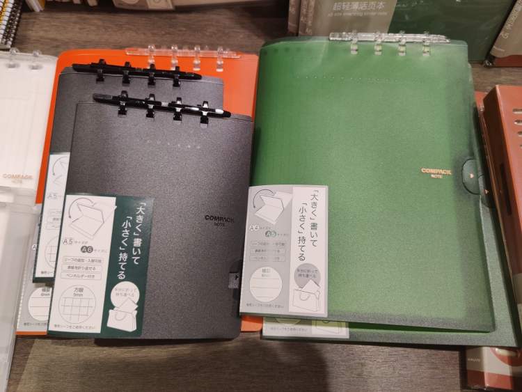 锦宫的无折痕对折文件夹COMPACK NOTE,试用之后才知道好在哪里。黄色、橙色、蓝色、墨绿色、黑色、白色等半透明色,A5、A4、A3等尺寸一字排开,打开后可以看到纸是封面的两倍大,而且没有折痕。