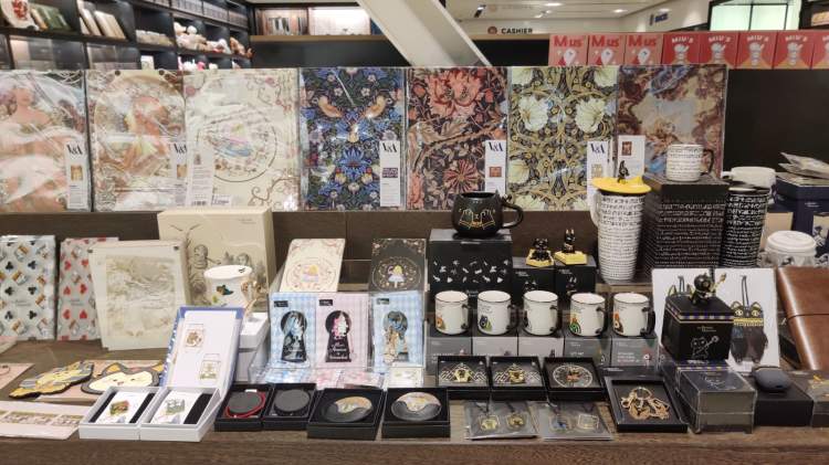 进门最显眼的位置,一边留给了大英博物馆和V&A博物馆,一边留给了故宫文创。大英博物馆的埃及系列Airpods耳机套,小黑猫长了两只小耳朵,可能是最可爱的Airpods耳机套。马约里卡系列的小镜子,背面如画,抽出来是光可照人的小镜子,好看又便携。