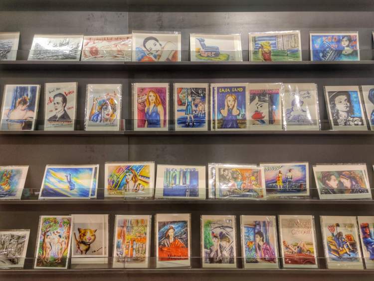 店里满墙的明信片也值得一看,大多是MIUBOOK邀请原创画手创作的独家产品。电影场景的手绘版本,很酷。