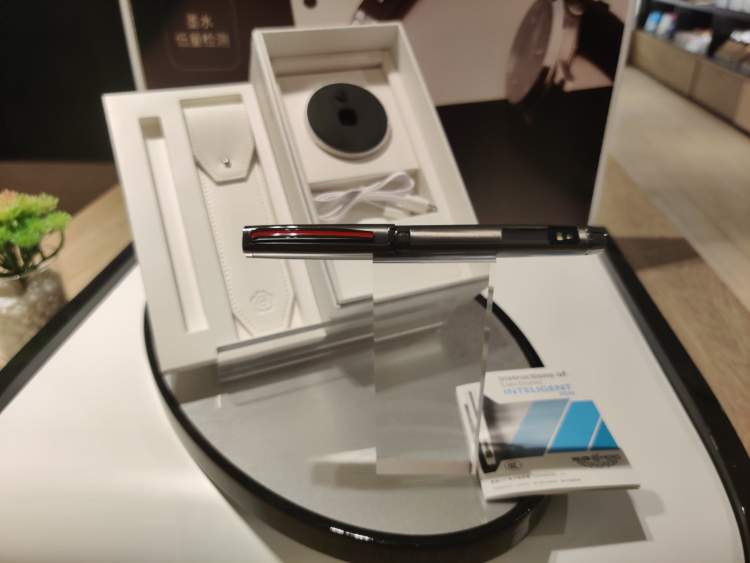除了白金,店里最多的钢笔就是英雄钢笔了,而且也都是平时难得一见的。英雄D01智能钢笔,可以测试紫外线、心率、温度、含墨量,并显示在笔尾的电子显示屏上。与此同时,你还是可以用它来写字的。