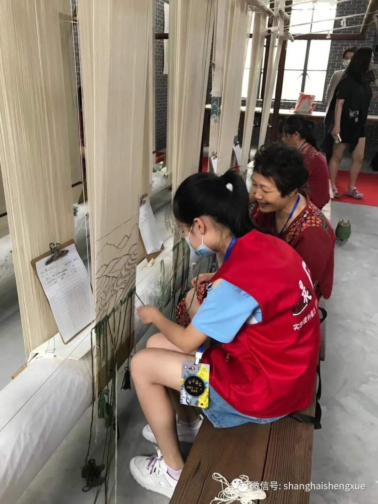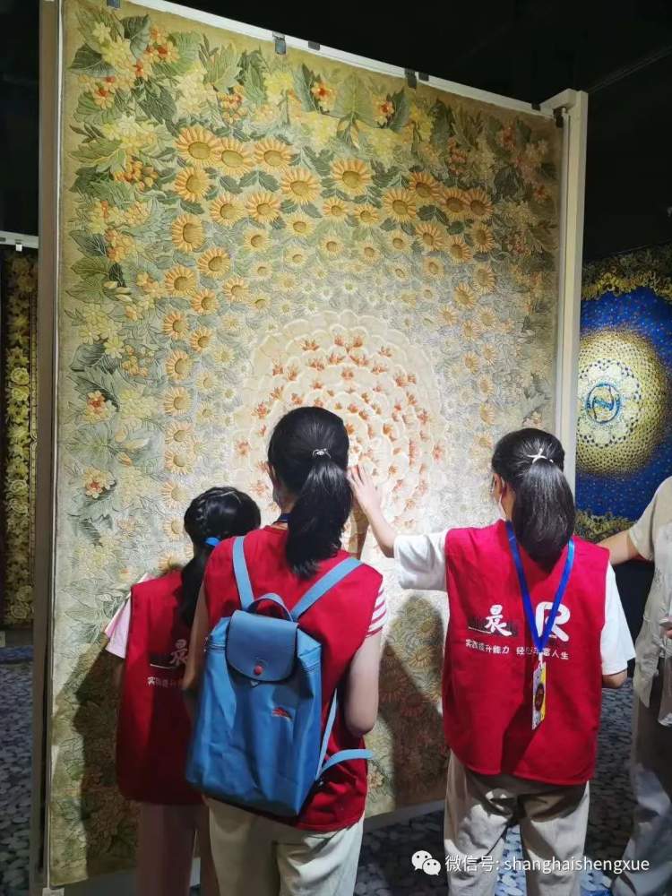 7月17日,晨报学记团小记者走进上海金山丝毯厂,体验丝毯编织,参观上海美华大师丝毯创意工作室,听程美华大师讲述她一生择一事的故事。