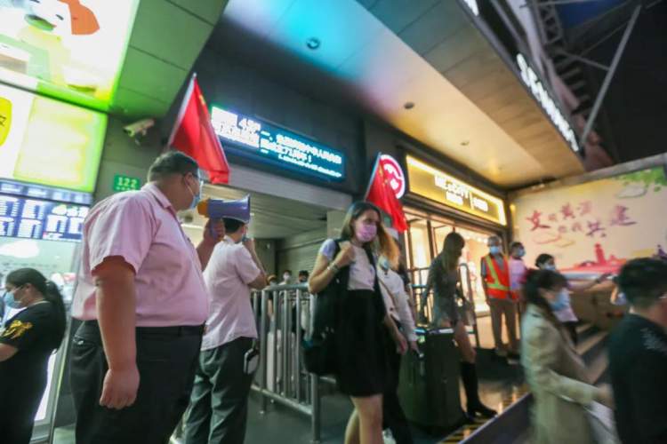 昨天20:00,南京东路车站停止上下客作业。为了更好地完成封站任务,当天15:00保驾人员就陆续到岗,为车站大客流以及封站保驾护航。
