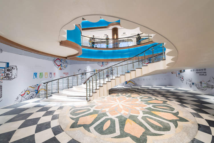 走入“豫园百货”,Art Deco代表的直线、对称和几何图形设计元素随处可见:水磨石、马赛克排列叠加成具有流线感的沉浸式走道、几何型的块面图案具有浓郁的复古式时尚;