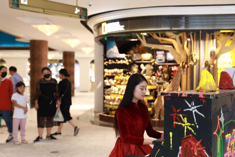 罗小姐穿着一身汉服,陈小姐则是旗袍装扮,两人结伴互相拍照,把豫园百货里里外外拍了个遍。