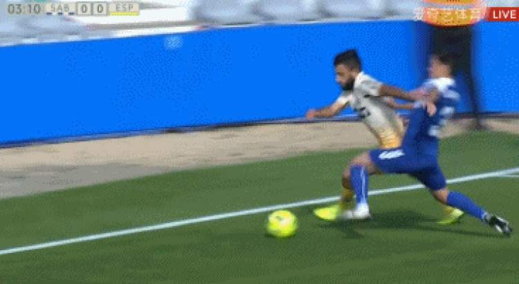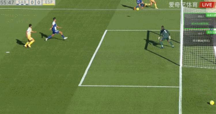 第9分钟,西班牙人的另一名前锋普阿多中场抢断后送出秒传,武磊高速插上,一对一面对萨瓦尔德门将的射门偏出,错过了为球队首开纪录的最好机会。