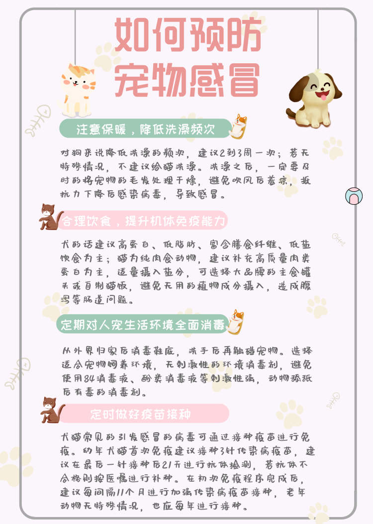 为了预防犬猫感冒,这些方面需注意↓