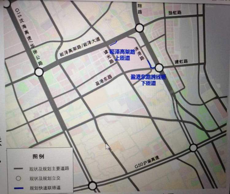 规划总体方案为:在国家会展中心北侧崧泽高架路、南侧涞港路分别设置上匝道和下匝道。北侧崧泽高架上匝道设置在诸光路以东,利用现状国展中心外环路部分空间,沿崧泽高架南侧设置西向东上匝道,利用现状崧泽高架主线拼宽,向东接入崧泽高架主线;南侧利用嘉闵高架-建虹路立交设置下匝道,向西跨过沪昆铁路外环线后,右转至涞港路接地。