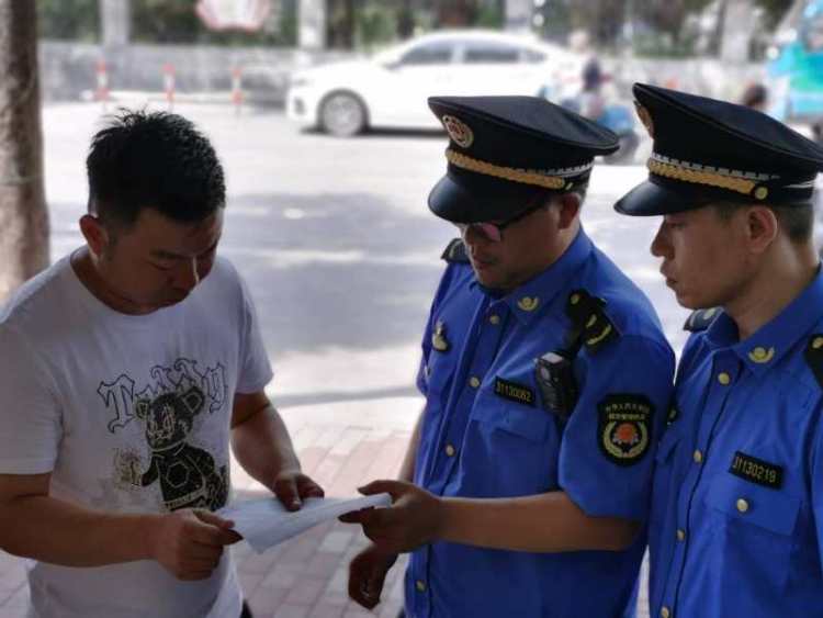 长宁城管执法队员开出谈话通知单。