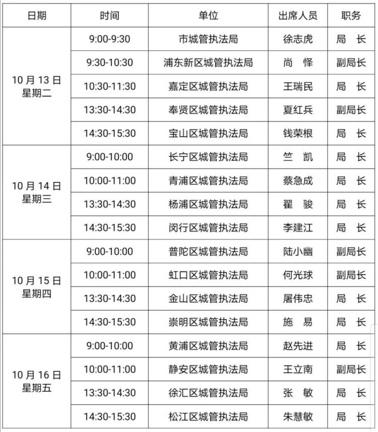 2020年城管执法局长接听市民来电安排表