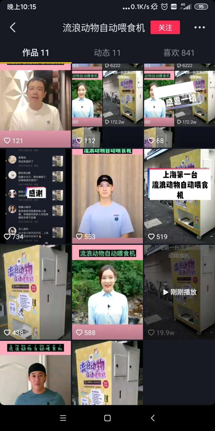 这两天,一段“上海首台流浪动物自动喂食机”的视频在抖音、视频号等网络渠道传播,还有几位明星为其代言,观看量在短短2天内突破了数百万次(相关报道点此)。