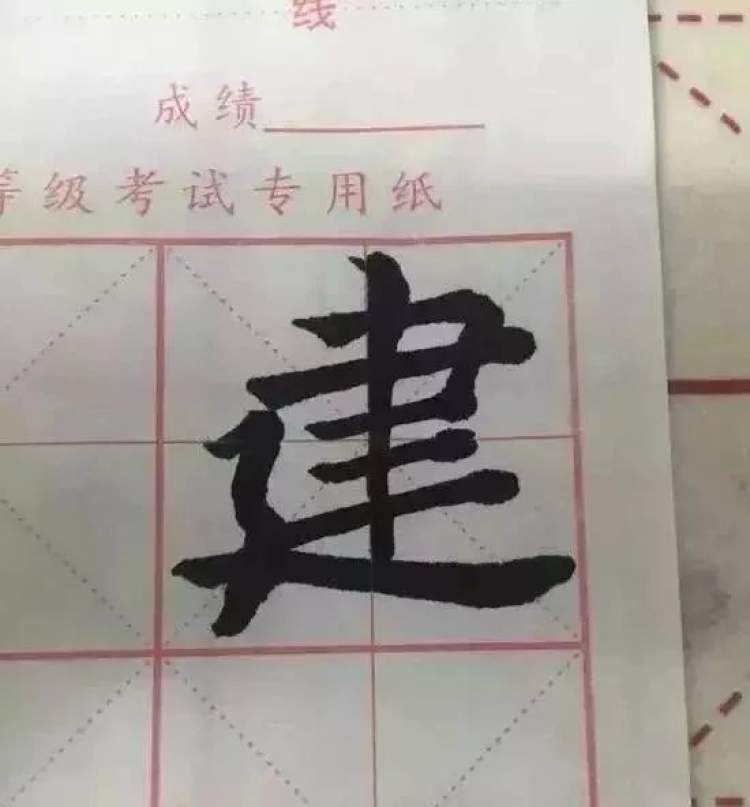 如上图中的作品,只要出格子或者没有居中,都要扣分