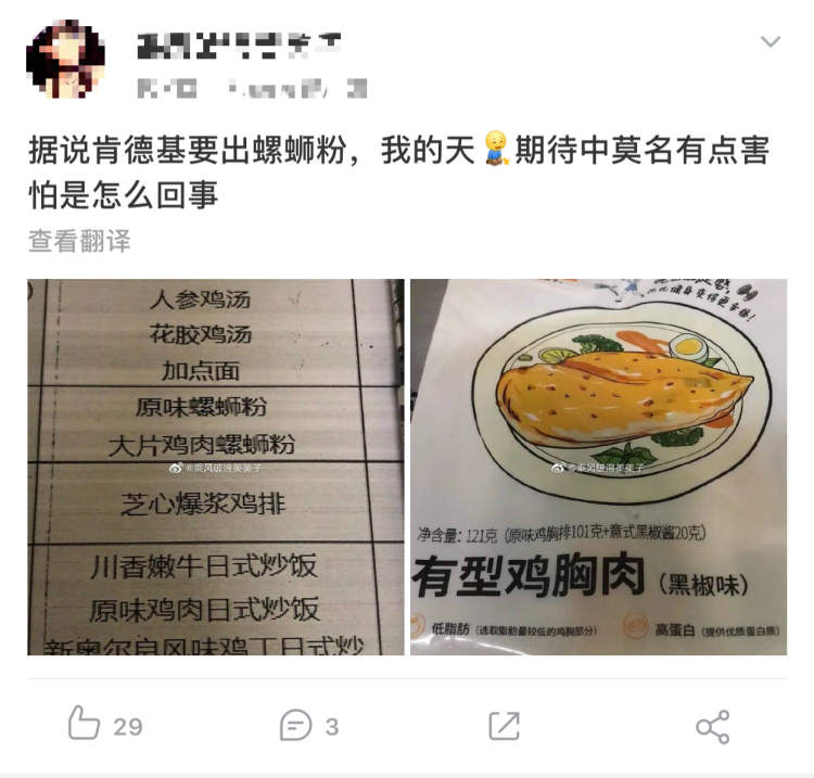 肯德基要出螺蛳粉,网友自然吐槽欲爆棚。