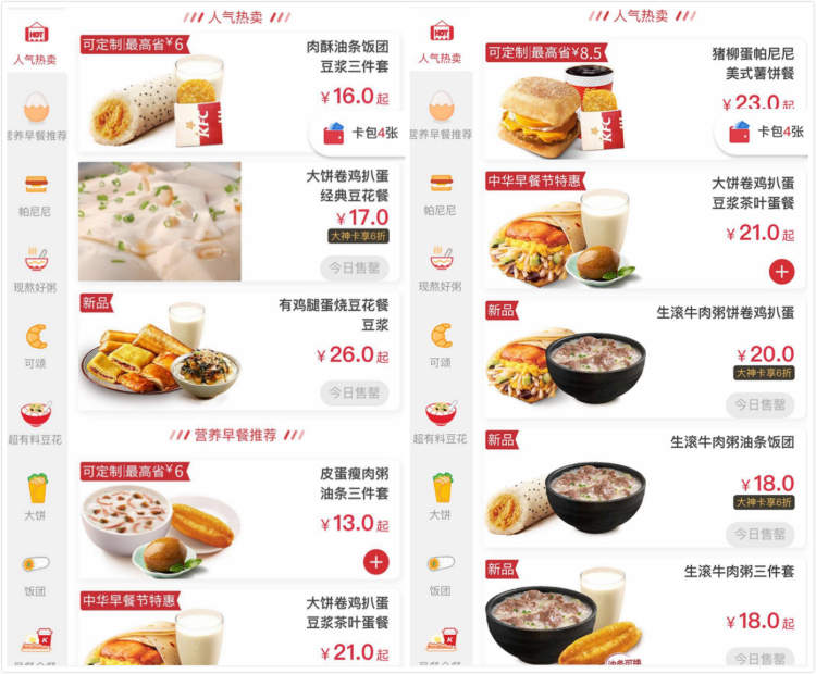 当年,肯德基出了老北京鸡肉卷,中西合璧吸引来无数目光,而这款餐点也历经了时间的考验。目前肯德基的菜单上,依然有着很多中餐的身影。