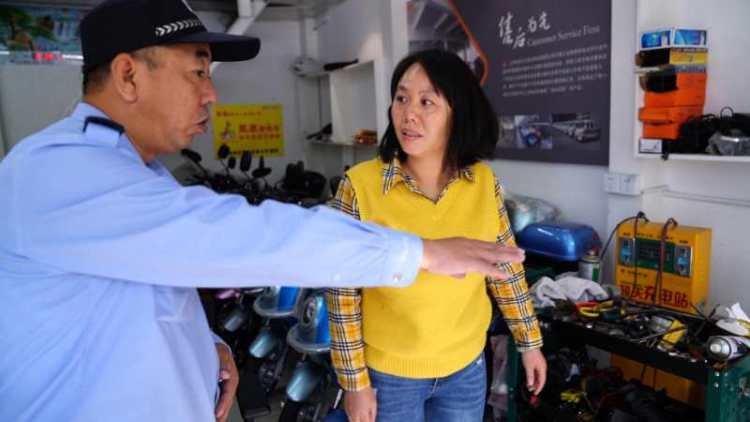 2020年10月13日,塘桥地区峨山路上一家电动自行车店内,浦东新区副区长、浦东公安分局局长徐长华正带队检查沿街商铺消防隐患,他仔细询问经营负责人日常经营情况,检查店内车辆及电瓶摆放情况,还注意查看摆放在店内角落和门口的灭火器,确保消防安全到位。