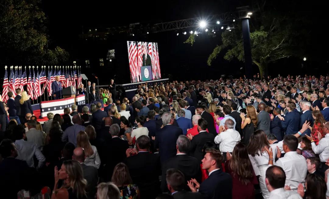 △当地时间8月27日,共和党全国代表大会进入最后一天,特朗普在白宫发表演讲,现场大量人员聚集。(图片来源:视觉中国)