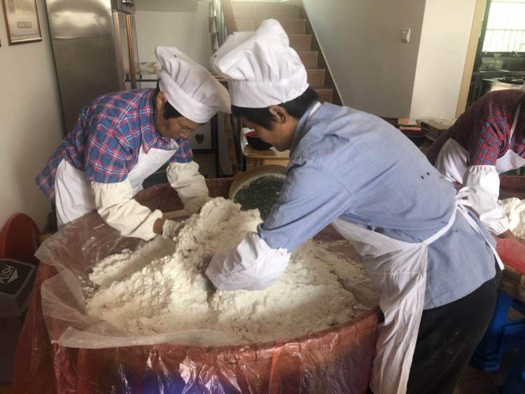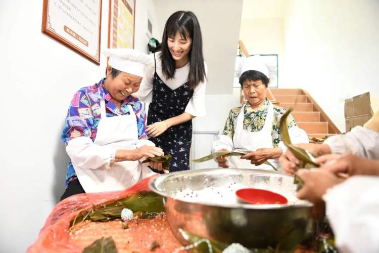 其实,乡村阿婆个个都有手艺、有绝活,以往每到传统节日,都有市区居民发来购买粽子、方糕等订单的情况。“我们要把卖东西做成卖体验!”李天舒一边对外发布了宣传,一边招募有手艺的村民们,今年79岁的村民汤秀飞就是其中之一,她包粽子、烧土灶、做方糕、塌饼,样样拿手。因为擅长组织村里的阿姨们一起干活,还被村民们戏称为“车间主任”,如今汤秀飞足不出“户”,就实现了增收,“一天工资100块,工作蛮好,蛮开心的。有客户来我就做,客户不来就休息,做做休息休息,很开心。”