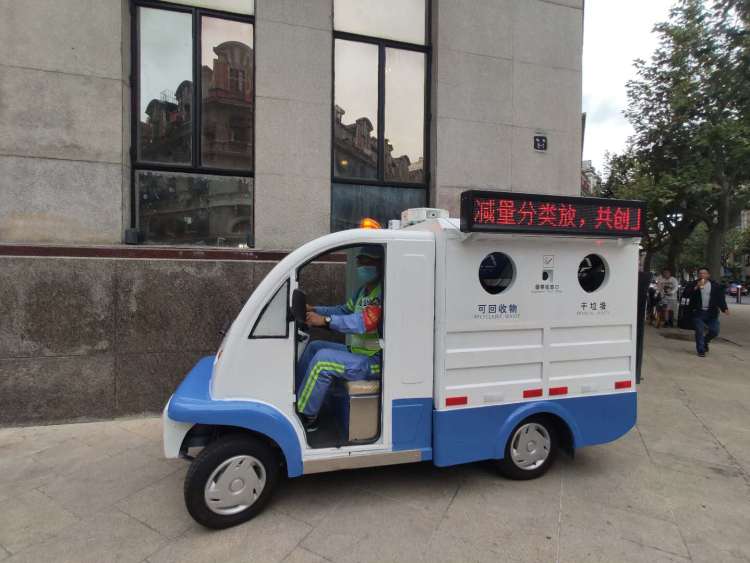 如果遇到节假日大客流,保洁人员会将废弃物投放车开上街头,停靠在人流量大的地方,供市民游客紧急投放使用,这种车辆不仅可以投放干垃圾和可回收物,还设有专门的烟蒂投放口。