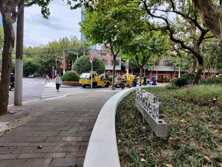 城中心究竟需要怎样的绿地?改造后的威海路公共绿地或许是个很好的解题思路。刚刚靠近威海路延安中路路口,周到君就被这里精致而显眼的白色花坛、叶片廊架所吸引。绿地的整体设计,又与周围的学校、文化单位建筑,以及马路对面的陕西北路老字号一条街交相呼应。