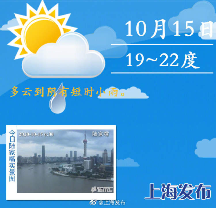 傍晚起雨水归来 但雨量不大 气温略降 周到君 2020-10-15 来源:周到上海 冷空气南下,今起将时有小雨袭扰。今天傍晚开始雨势明显,但雨量不大,气温也会略有下降。明天小雨继续,全天气温仅17-20℃。 周六开始至下周中期阴到多云为主,伴随弱降水频率较高。气温也起起伏伏,最高气温都不超过22℃。请大家备好雨具、及时添衣。 来源:周到上海 作者:周到君 赞一个 (0)