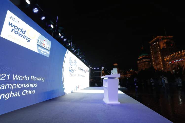 10月16日晚7点,2021年世界赛艇锦标赛倒计时一周年启动仪式在上海外滩举行。当上海市副市长陈群启动赛艇世锦赛倒计时,东方明珠塔和上海中心两大地标性建筑同步亮灯,赛事主题色与仪式现场交相辉映,照亮浦江两岸夜空,寓意上海将积极推进赛事筹办,向世界呈现一届精彩难忘的赛艇世锦赛。