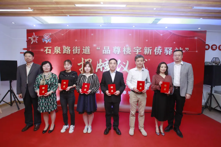 普陀区归国华侨联合会主席宁克标、石泉路街道办事处主任何家骥为品尊楼宇新侨驿站站长姚玲、片区、居民区侨之家负责人陈洁、周振文、唐义江、郑晓军、朱玥颁发聘书。