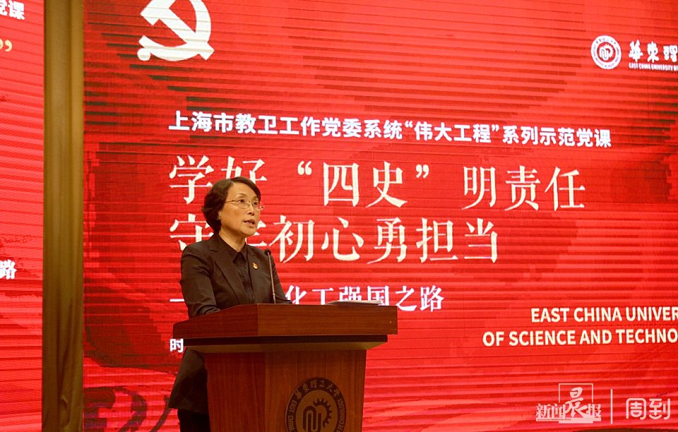 这堂示范党课以“学好‘四史’明责任,守牢初心勇担当——感悟化工强国之路”为主题,作为上海市教卫工作党委系统第2季“伟大工程”系列示范党课之一。