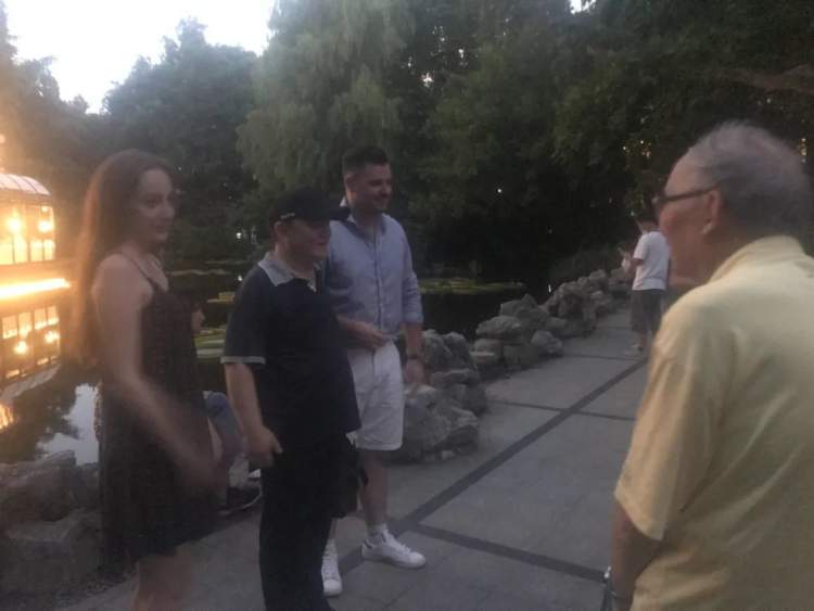 十几分钟后,Bohdan准备起身去吃饭了。临走前,他询问我们是否可以一起合张照。于是,大家在荷花池前站成了一排。