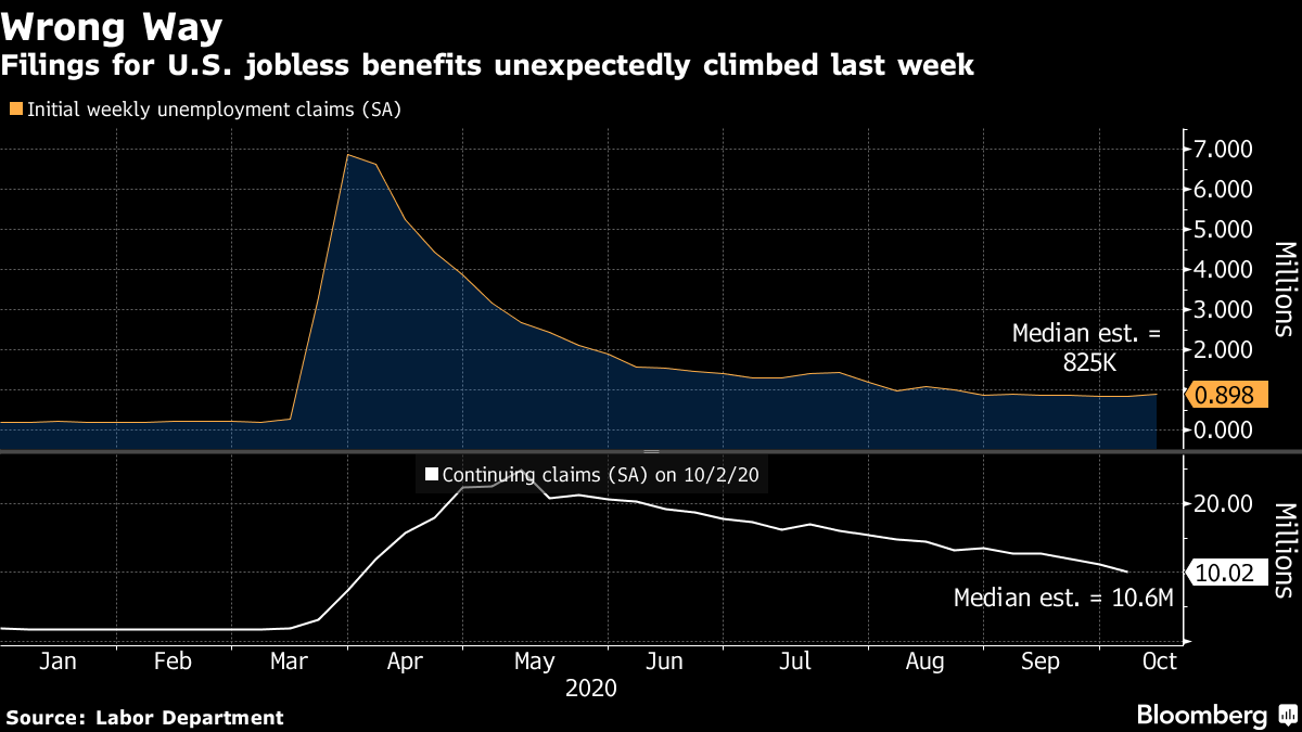 △彭博社称,美国首次申请失业救济人数意外激增,达8月以来最高水平