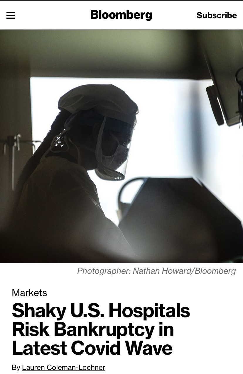 △彭博社10月12日报道,美国第二次疫情大暴发已导致越来越多的医院濒临破产